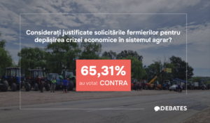 În contextul protestelor din luna iunie, echipa Debates.md a organizat o dezbatere, în care 65.31% dintre participanții au votat că nu susțin solicitările fermierilor în baza celor 5 revendicări, în timp ce doar 34.68% au votat afirmativ. Majoritatea consideră că solicitările fermierilor nu sunt justificate.