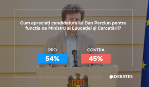 Echipa Debates a organizat o dezbatere online, oferind cetățenilor ocazia să își exprime opinia cu privire la candidatura lui Dan Perciun. Rezultatele dezbaterii reflectă o diversitate de opinii în rândul participanților: 54.59% au votat în favoarea candidaturii sale, în timp ce 45.4% au exprimat o opinie contrară.